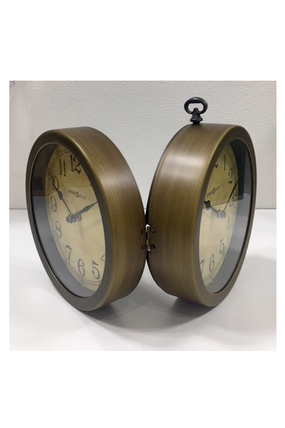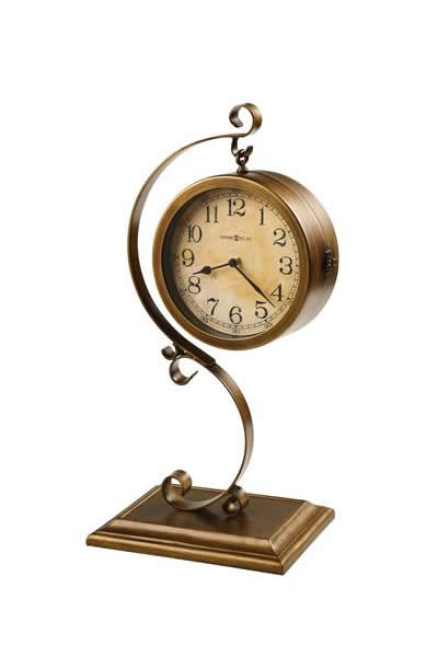 アンティークブラッシング真鍮で仕上げ、両面文字盤になっているユニークなデザインです。ソファテーブルクロックは、キャストベースに曲がった金属がスクロールスタンドから吊り下げられているおしゃれなデザイン。時計の台座底にはフルフェルトの保護シートが付いています。インテリアとしても飾られるおしゃれアイテムです。